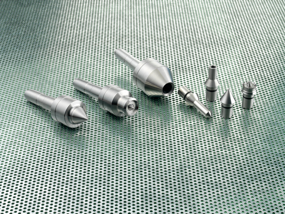 Le punte intercambiabili sono costruite con tolleranze estremamente ridotte per garantire un accoppiamento perfetto con il corpo della contropunta. Il bloccaggio avviene tramite anello elastico in gomma, che mantiene la punta saldamente in posizione durante la lavorazione.