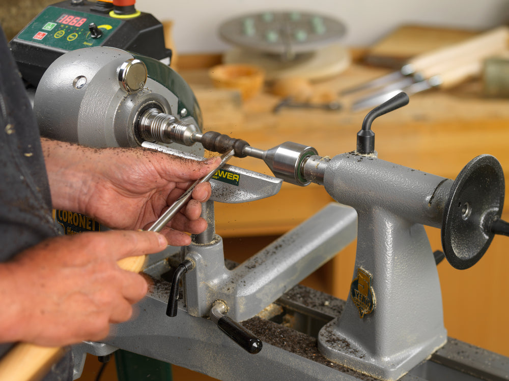 Consente inoltre la rimozione e il riposizionamento preciso del pezzo, utilizzando le impronte lasciate nel legno come riferimento di centraggio. È particolarmente indicata per pezzi incollati con carta e si abbina perfettamente ai trascinatori Coronet Hawk a denti multipli, garantendo un serraggio sicuro su entrambi i lati del tornio.