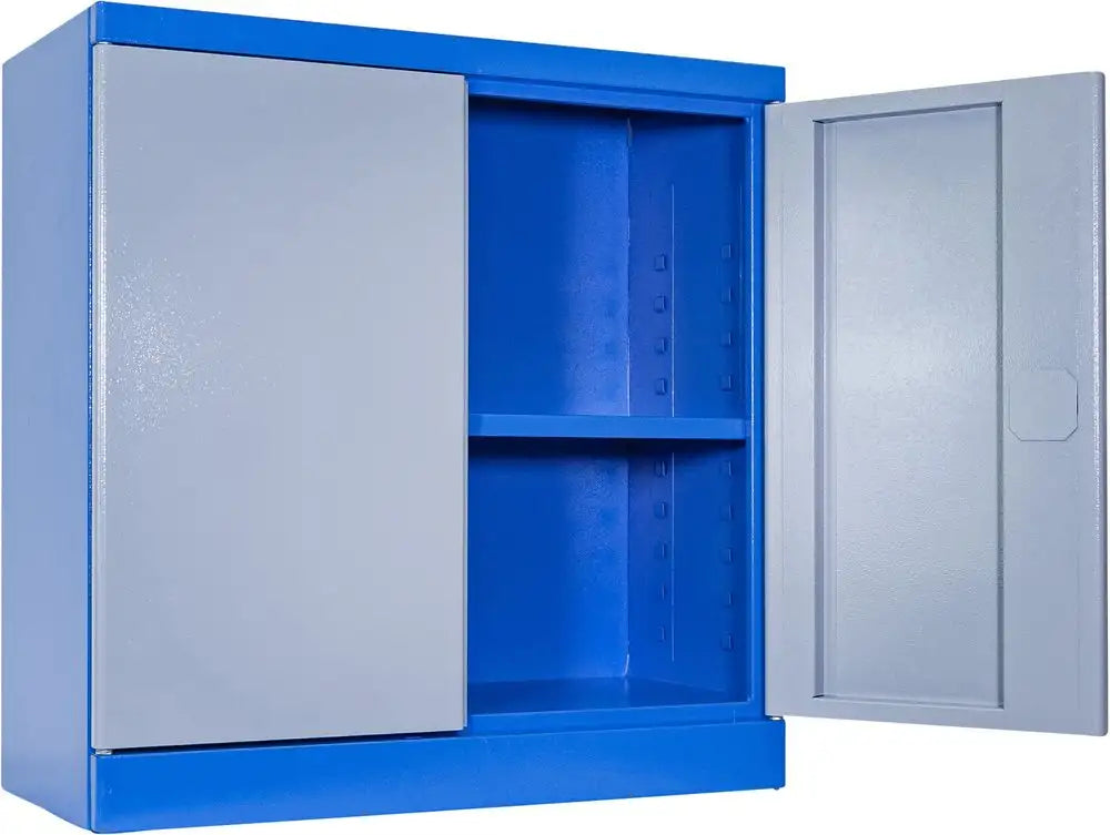 L’armadio porta attrezzi Guede TYPE B1 è una soluzione compatta e robusta per l’organizzazione sicura di utensili e materiali in officine, garage e ambienti di lavoro con spazi ridotti. Realizzato con struttura interamente in acciaio e design a bordi arrotondati, viene fornito già assemblato e pronto all’uso. È dotato di 2 ante con cerniere interne e tiranteria di chiusura nascosta, oltre a 1 ripiano regolabile con portata fino a 50 kg, ideale anche per utensili e macchine compatte. La serratura a cilindro con doppio bloccaggio e chiavi incluse garantisce sicurezza e affidabilità. La verniciatura a polvere nei colori RAL 5015 (corpo) e RAL 7001 (ante) assicura resistenza e durata nel tempo.