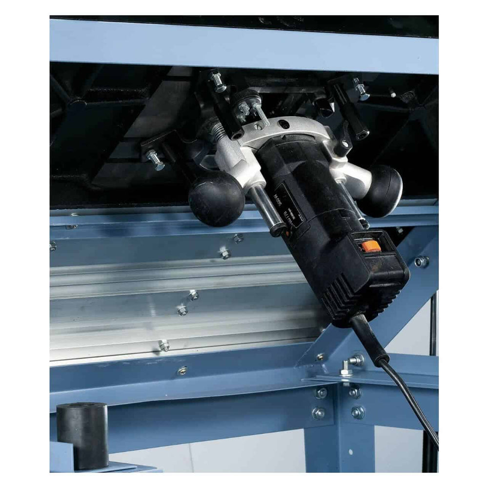 Il Bernardo Banco Fresatrice RT 3 F è un banco professionale che unisce robustezza, versatilità e praticità. Dotato di piano in ghisa rettificata da 785 x 505 mm con tavola scorrevole integrata (785 x 310 mm), permette fresature precise anche su pezzi di grandi dimensioni. La tavola inclinabile da 0° a 45° amplia le possibilità di lavorazione, consentendo angolazioni e profili complessi. Il banco è equipaggiato con battuta in alluminio, anelli di riduzione, dispositivo di pressione e calotta di protezione fresa per garantire sicurezza e precisione. Con altezza di lavoro ergonomica a 860 mm, manicotto di aspirazione Ø 60 mm e un peso di 55 kg, rappresenta una soluzione affidabile per hobbisti evoluti e falegnami che necessitano di un banco fresatore compatto ma completo.