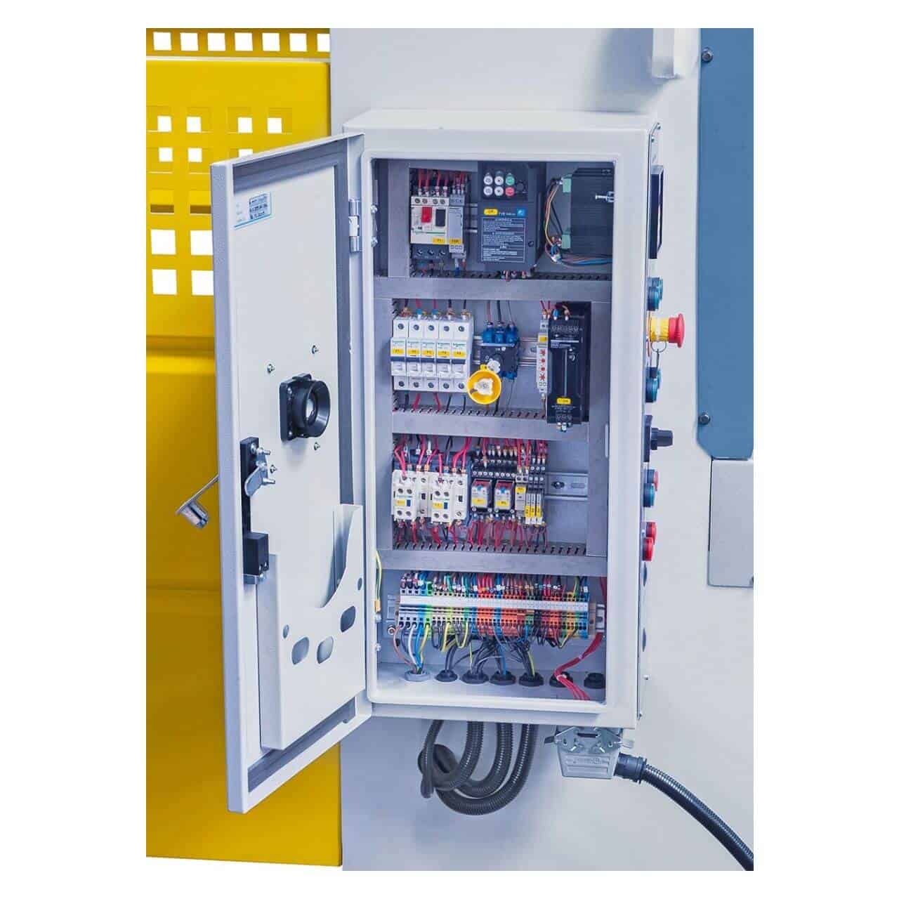 La Bernardo MTE 1100 x 6 mm NCC è una cesoia a ghigliottina motorizzata progettata per il taglio professionale di lamiere fino a 6 mm di spessore (400 N/mm²) e 1100 mm di lunghezza. Grazie alla battuta posteriore NC motorizzato con viti a ricircolo di sfere e al controllo integrato BRL 401.2, garantisce precisione, praticità e produttività. Il piano con rulli integrati e il supporto frontale facilitano la movimentazione di lamiere di grandi dimensioni, mentre l’angolo di taglio di 2° assicura superfici pulite e prive di bave. Le lame doppie superiori e inferiori in acciaio temprato assicurano durata e qualità di taglio. La sicurezza dell’operatore è garantita dalle protezioni con fotocellule e dal pedale con arresto di emergenza. Con un potente motore da 7,5 kW, una struttura robusta in acciaio saldato e un peso di 2000 kg, la MTE 1100 x 6 mm NCC rappresenta la soluzione ideale per officine e industrie che necessitano di una cesoia compatta ma potente per lavorazioni gravose.