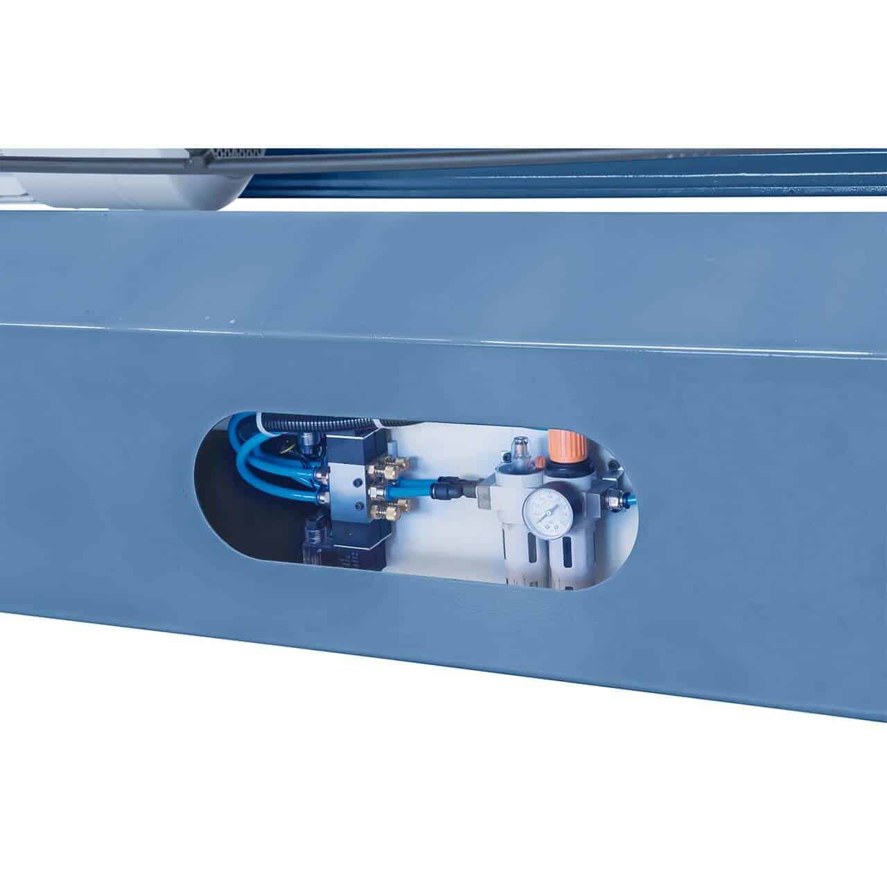 La Bernardo MTR 1360 x 6 mm NCC è una cesoia a ghigliottina motorizzata ad alte prestazioni, progettata per il taglio professionale di lamiere fino a 6 mm di spessore (400 N/mm²) e 1360 mm di lunghezza. Grazie al controllo Fuji con touch screen e alla battuta posteriore NC motorizzata con viti a ricircolo di sfere, garantisce regolazioni rapide e precise con la massima sicurezza. Il sistema pneumatico di supporto lamiera offre stabilità durante il taglio di fogli sottili e di grandi dimensioni, mentre l’espulsione della lamiera può avvenire frontalmente o posteriormente, rendendo la macchina versatile per diverse esigenze operative. Le lame superiori e inferiori a doppio tagliente in acciaio temprato assicurano tagli netti e privi di bave. Con un potente motore da 7,5 kW, struttura in acciaio saldato e peso di 2350 kg, la MTR 1360 x 6 mm NCC rappresenta la soluzione ideale per officine e aziende che necessitano di una cesoia robusta, affidabile e tecnologicamente avanzata.