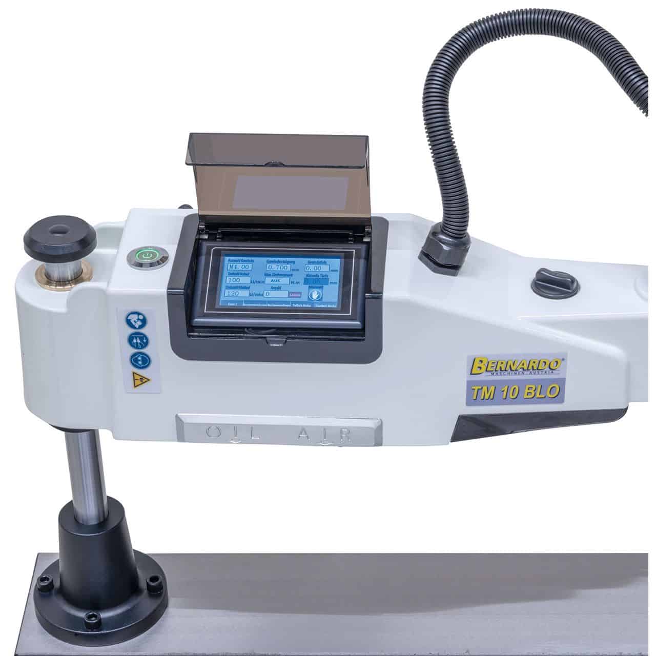 La Bernardo Filettatrice elettrica TM 10 BLO / R 1500 è una macchina compatta e precisa per filettature da M3 a M10 su acciaio, inox, alluminio e metalli non ferrosi. Garantisce alta produttività e maggiore accuratezza rispetto alla filettatura manuale, mantenendo filetti sempre a 90°. È dotata di sistema micro-spray per raffreddamento costante con minimo consumo di lubrorefrigerante e di un dispositivo di soffiaggio trucioli che assicura visibilità ottimale del foro. Il braccio snodato con raggio operativo di 1500 mm offre grande flessibilità operativa, mentre il motore inclinabile da 0° a 90° consente lavorazioni anche angolate. Il mandrino a cambio rapido con frizione di sicurezza integrata protegge i maschi da rotture accidentali. La gestione avviene tramite touchscreen con indicazione digitale della profondità. Con velocità variabile 200–1000 rpm, motore da 600 W (230 V) e peso di 28 kg, è la soluzione ideale per officine, reparti produttivi e laboratori di precisione.