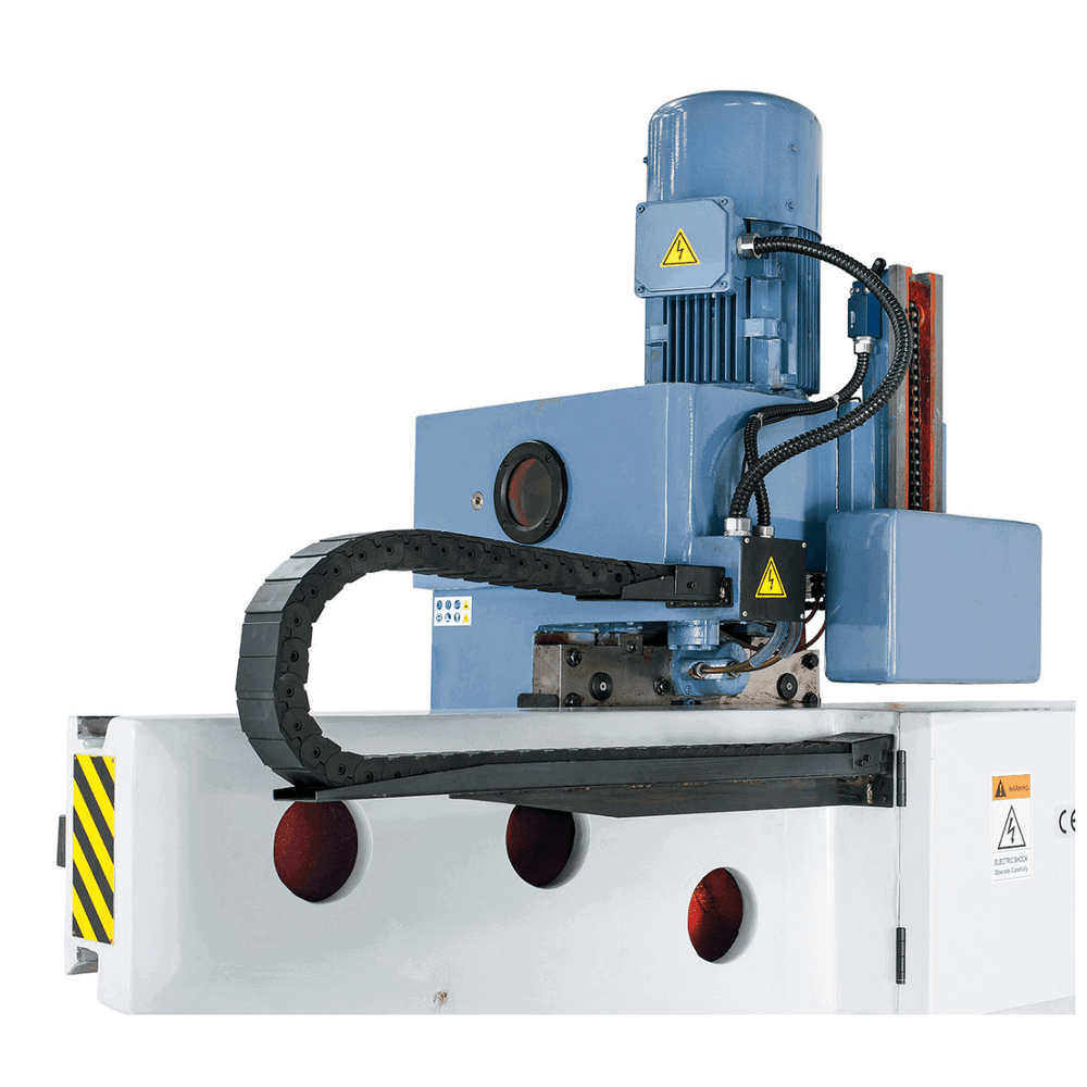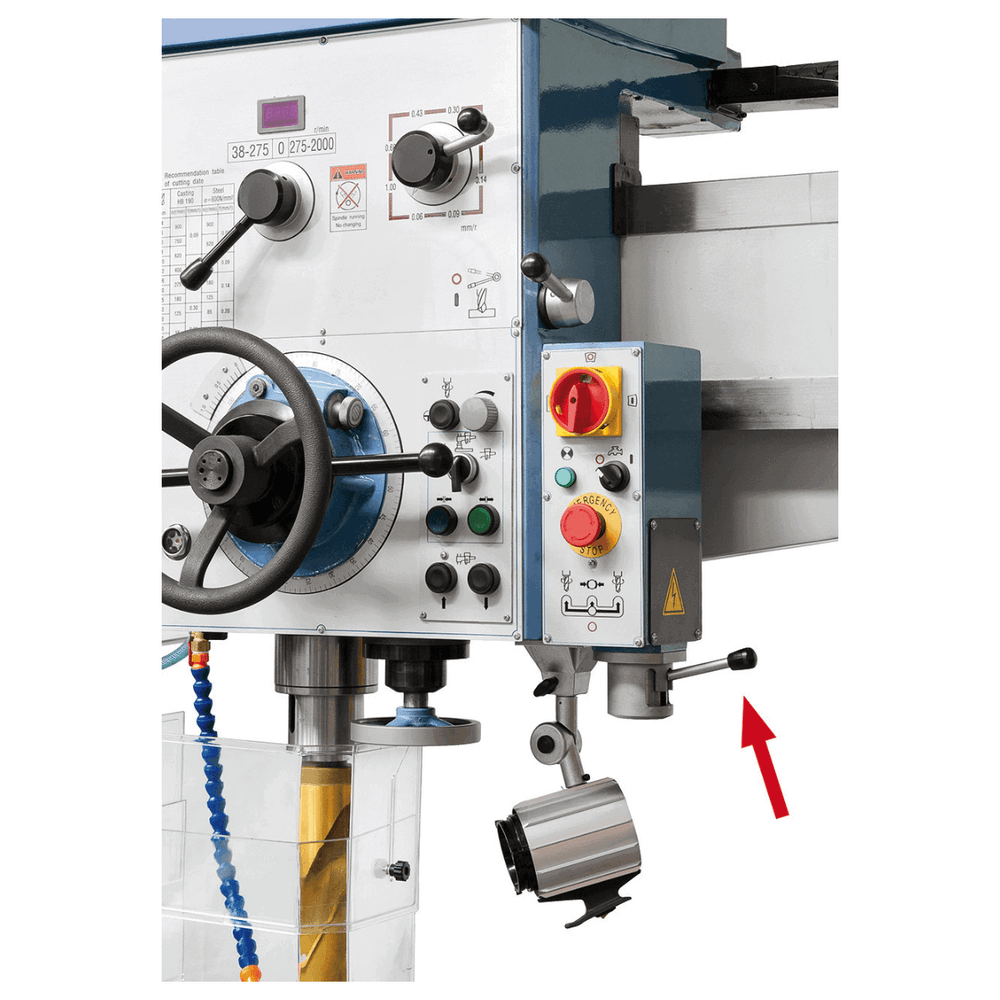 Il contrappeso integrato sul mandrino garantisce equilibrio ottimale, mentre il motore di sollevamento consente regolazioni rapide del braccio mantenendo il punto di lavoro, ideale per lavorazioni ripetitive. Inclusi di serie: tavolo a scatola, pompa di refrigerazione, protezione regolabile, luce LED e accessori professionali.