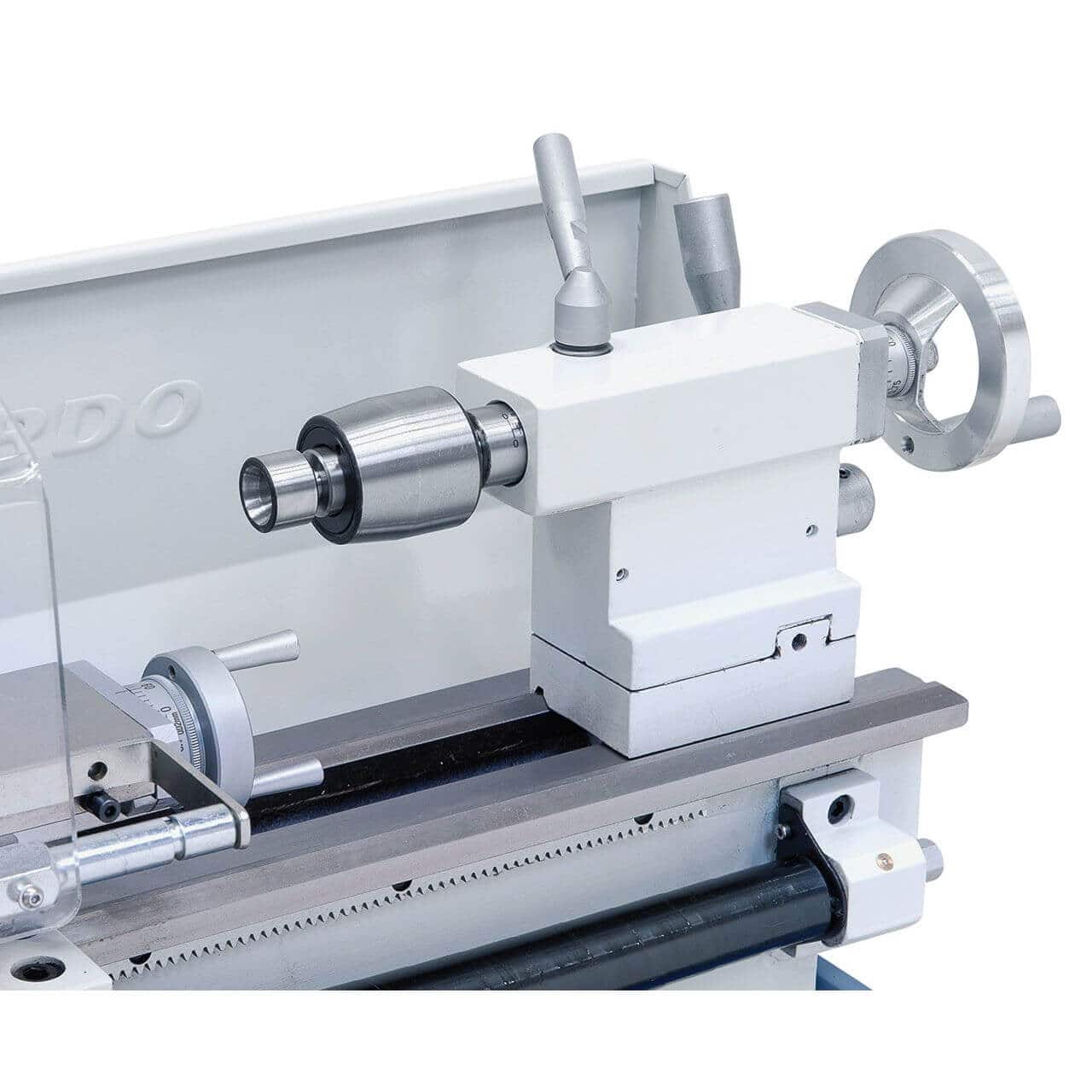 Il tornio da banco Bernardo Profi 400 V / 230 V è una macchina compatta e precisa, ideale per hobbisti avanzati e piccoli laboratori. Con una distanza tra le punte di 400 mm e un’altezza di centro di 100 mm, consente la lavorazione di pezzi fino a Ø 200 mm. Il foro mandrino da 20 mm con cono MT3 garantisce stabilità, mentre la velocità variabile continua (50 – 1250 / 100 – 2500 rpm) permette di adattarsi facilmente a diversi materiali e lavorazioni. Dispone di avanzamenti automatici, filettature metriche e in pollici, rendendolo versatile per molte applicazioni. Equipaggiato con mandrino autocentrante DK11 Ø 100 mm, torretta portautensili a 4 posizioni e indicazione digitale della velocità, combina robustezza e funzionalità in un design compatto. Con un peso di 65 kg e dimensioni ridotte, è perfetto per officine che cercano precisione e praticità in poco spazio.
