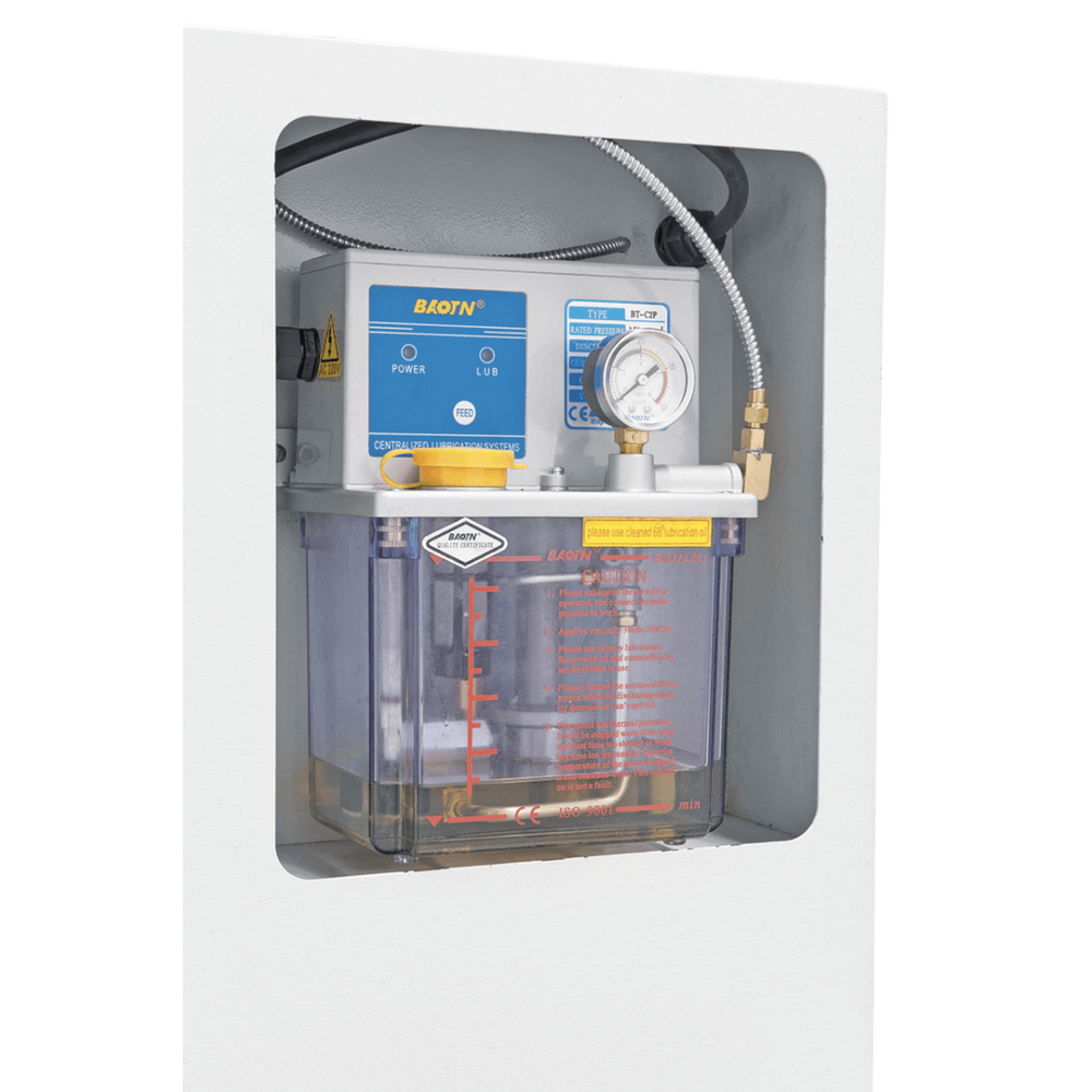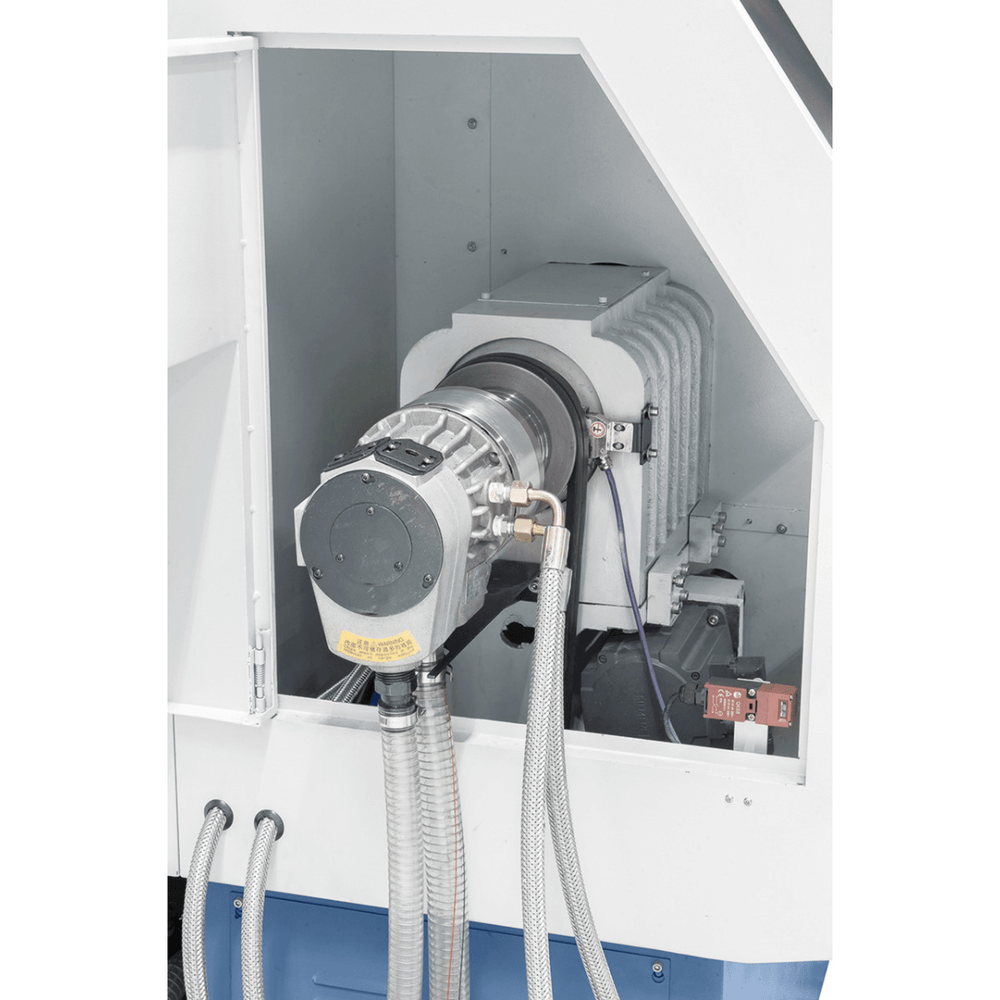 Il tornio monta un motore brushless AC da 3,7 kW, che assicura potenza costante, silenziosità e massima affidabilità anche nelle lavorazioni continuative.