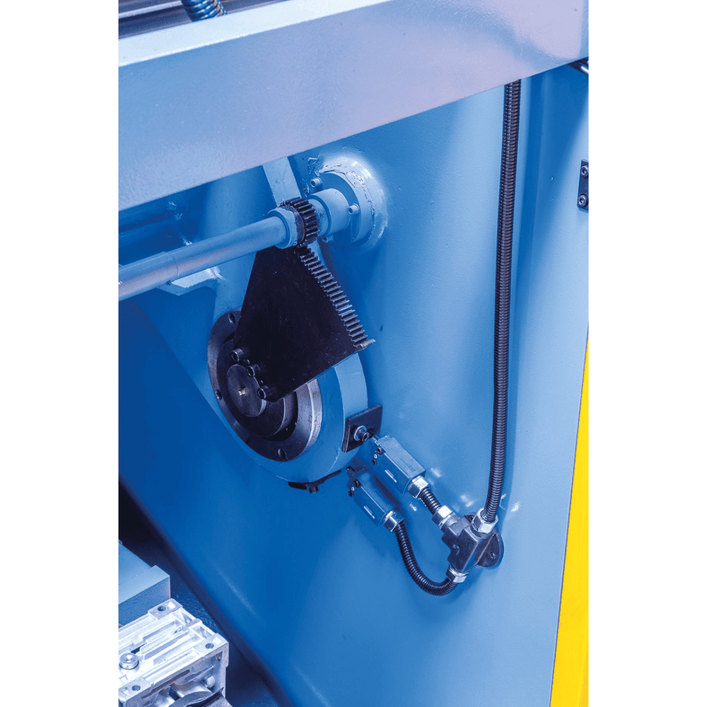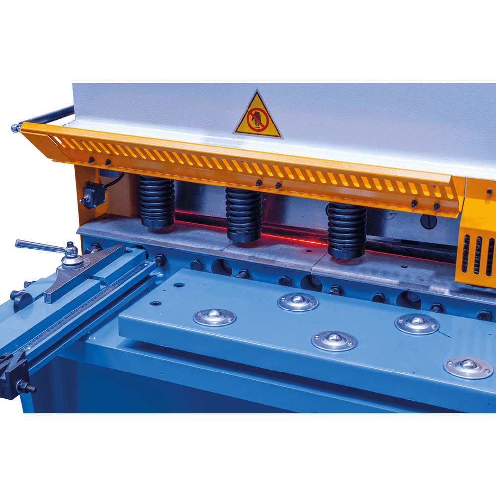 La cesoia idraulica Bernardo HSB 2000 x 6 è una macchina professionale per il taglio efficiente e sicuro di lamiere fino a 2000 mm di lunghezza e 6 mm di spessore (400 N/mm²). Dotata di un pannello di controllo intuitivo con unità CNC ES21S, permette regolazioni rapide e precise dei parametri di lavoro, come contatore di taglio e larghezza. L’arresto posteriore motorizzato, azionato da mandrini a ricircolo di sfere, assicura movimenti precisi e affidabili. L’illuminazione integrata della linea di taglio con contorno d’ombra e i bracci di supporto frontali agevolano la lavorazione di pannelli di grandi dimensioni, mentre la barra di taglio con basso angolo (1°30’) garantisce tagli ottimali e puliti. La sicurezza è massima grazie a coperchio protettivo e fotocellule posteriori. Con un potente motore da 7,5 kW e una struttura robusta (3550 kg), la HSB 2000 x 6 è perfetta per carpenterie e officine che necessitano di affidabilità e precisione.