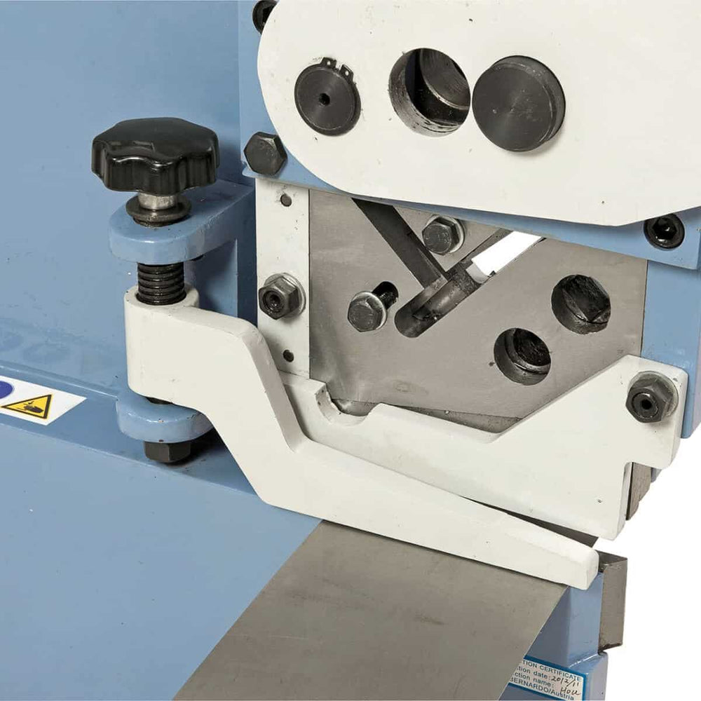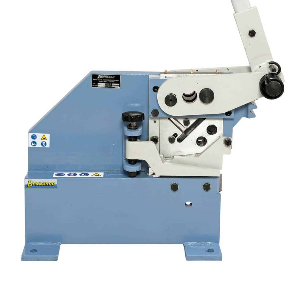 La cesoia a leva Bernardo PBS 22 è progettata per il taglio preciso e sicuro di lamiere e profili metallici. Versatile e robusta, è ideale per officine artigianali, laboratori scolastici e reparti di manutenzione. Grazie alla sua struttura in acciaio stabile e al coltello in acciaio temprato e rettificato, garantisce lunga durata e precisione costante. Il dispositivo di fermo regolabile in altezza previene la torsione del materiale durante il taglio, mentre l’ergonomia della macchina consente un utilizzo confortevole anche in sessioni prolungate. Con una capacità di taglio fino a 20 mm per materiali tondi e quadri, 6 mm per lamiera e 90 x 14 mm per piatti, la PBS 22 assicura prestazioni elevate con minimo sforzo grazie alla geometria di taglio ottimizzata. Una soluzione affidabile e indispensabile per chi cerca qualità e affidabilità nel taglio manuale di metalli.
