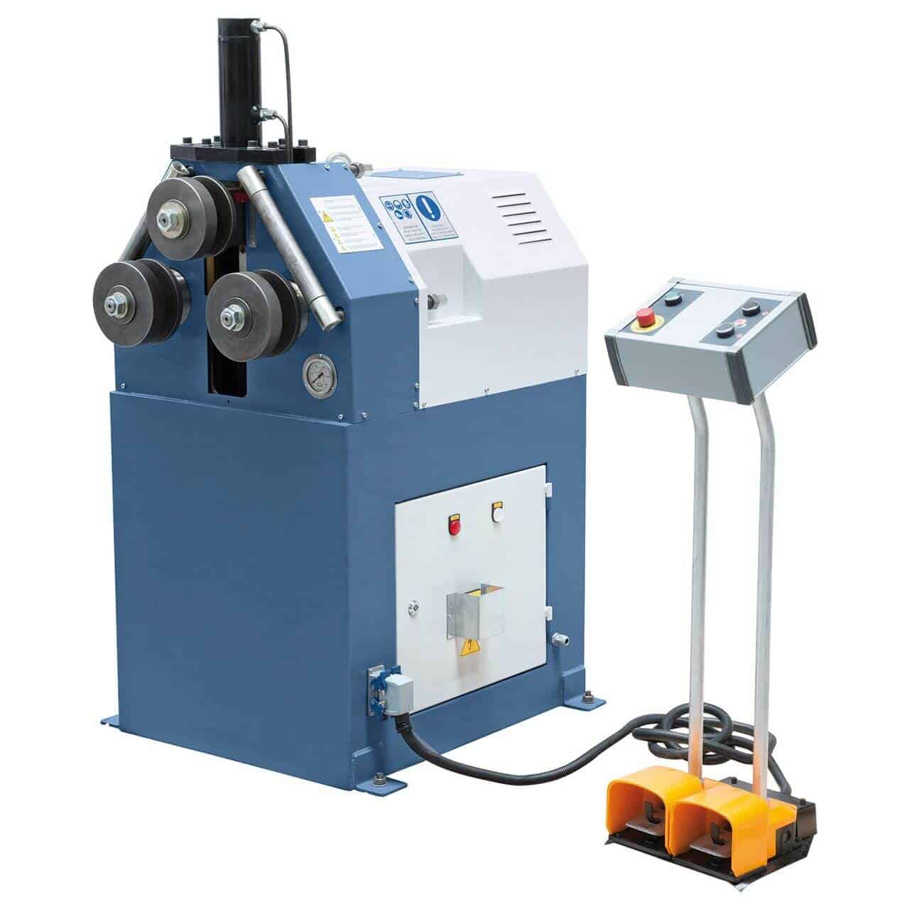 La curvatubi elettrica Bernardo BPK 55 H è una macchina professionale robusta e precisa, progettata per lavorazioni intensive di curvatura. La struttura in acciaio saldato garantisce stabilità e assenza di vibrazioni, mentre i 3 rulli motorizzati assicurano una piegatura uniforme e costante. Il rullo superiore è dotato di avanzamento idraulico di serie, permettendo regolazioni rapide e sicure. Grazie al pannello di comando mobile, tutti i controlli principali sono facilmente accessibili all’operatore. I rulli raddrizzatori laterali, regolabili manualmente, consentono la correzione delle curvature per risultati ottimali. La macchina può essere utilizzata sia in posizione orizzontale che verticale, ampliando il campo di applicazione. Gli alberi e i rulli, temprati e rettificati in acciaio speciale, garantiscono lunga durata e precisione nel tempo. Con una velocità di piegatura di 3,3 m/min e un motore da 1,5 kW a 400 V, la BPK 55 H rappresenta una soluzione professionale completa e affidabile per officine e carpenterie.