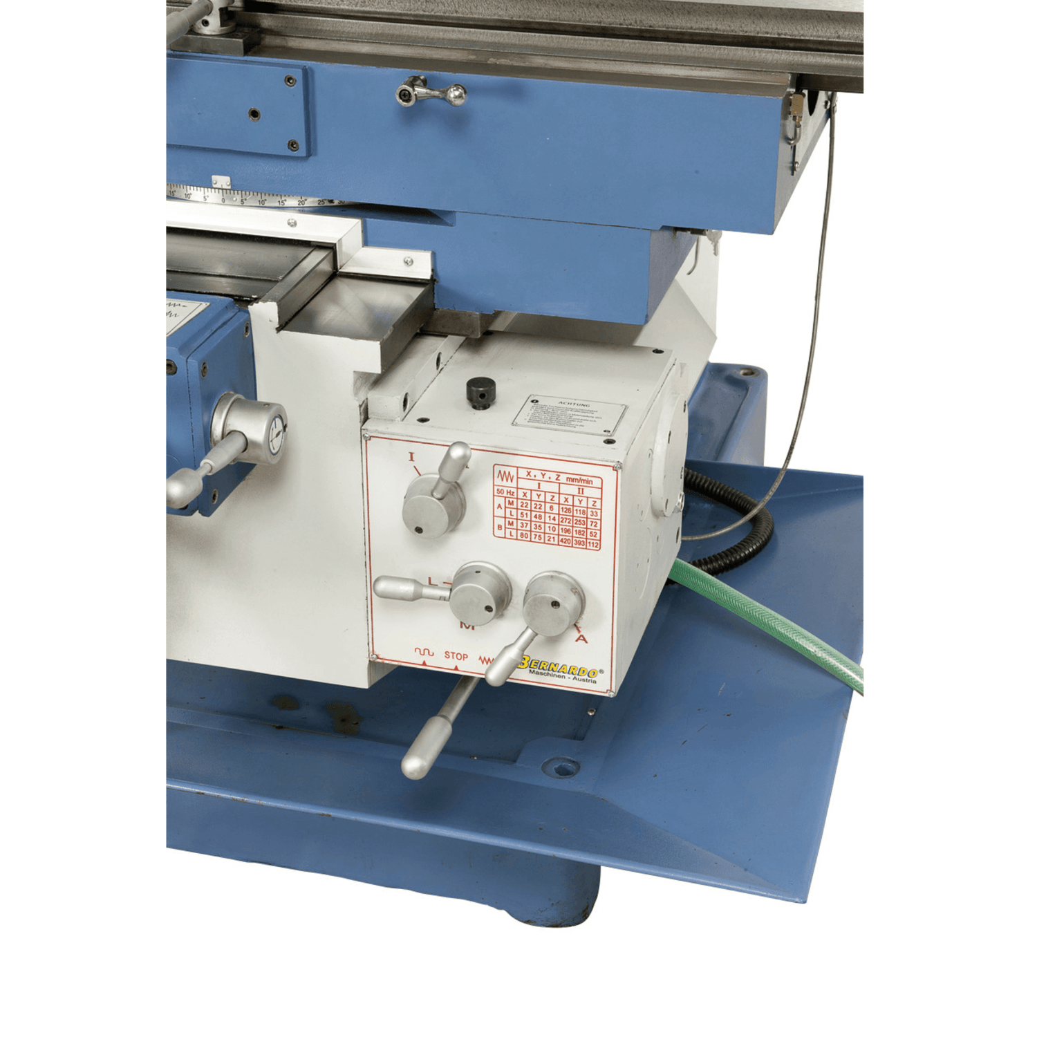 La Bernardo Fresatrice universale UWF 150 è progettata per lavorazioni professionali ad alta precisione, offrendo massima flessibilità grazie al mandrino orizzontale e verticale con attacco ISO 50. Dotata di 8 avanzamenti automatici su tutti gli assi, garantisce produttività elevata e risultati impeccabili. La struttura in ghisa massiccia riduce le vibrazioni, mentre le guide rettangolari su assi y e z assicurano stabilità durante la fresatura. Il piano di lavoro di grandi dimensioni (1650 x 360 mm) consente di operare su pezzi voluminosi, con regolazioni rapide e comandi intuitivi su pannello girevole. Il display digitale a 3 assi ES-12 H integrato agevola l’operatore, permettendo un controllo preciso dei movimenti. Ideale per officine meccaniche, carpenterie e lavorazioni industriali, questa fresatrice combina potenza, robustezza e affidabilità in un’unica soluzione.