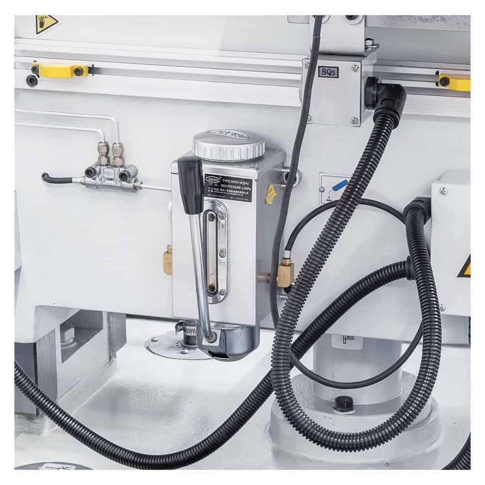 La macchina è dotata di 8 avanzamenti automatici del tavolo e rapidi sugli assi X, Y e Z, azionati da servomotore. Le ampie guide rettangolari sugli assi Y e Z migliorano la stabilità, mentre la struttura in ghisa grigia elimina le vibrazioni. Gli ingranaggi rettificati in bagno d’olio garantiscono un funzionamento fluido, mentre il sistema di lubrificazione centralizzata aumenta la durata delle guide.