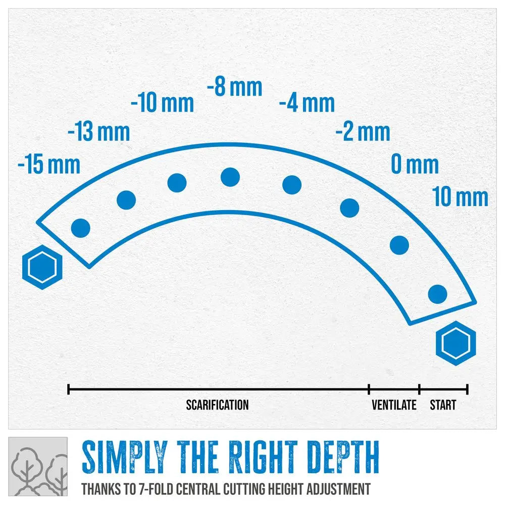 Il Güde GV 4001 B è un potente arieggiatore e scarificatore a benzina 2in1 pensato per la rigenerazione di prati fino a 1200 m². Equipaggiato con un motore a 4 tempi Power-Engine S 580 V da 196 cm³ (5,2 CV), garantisce prestazioni elevate e lunga durata grazie al sistema di protezione olio. Il rullo combinato lame + molle consente di arieggiare e scarificare in un’unica passata, rimuovendo muschio, erbacce e radici indesiderate. La regolazione centralizzata dell’altezza di lavoro a 7 livelli (-15 a +10 mm) offre la massima precisione di adattamento al terreno. Dotato di sacco raccoglierba da 30 litri, ruote su cuscinetti a sfera e manubrio ergonomico, il GV 4001 B combina potenza, affidabilità e praticità per ottenere un prato fitto, sano e ben ossigenato tutto l’anno.