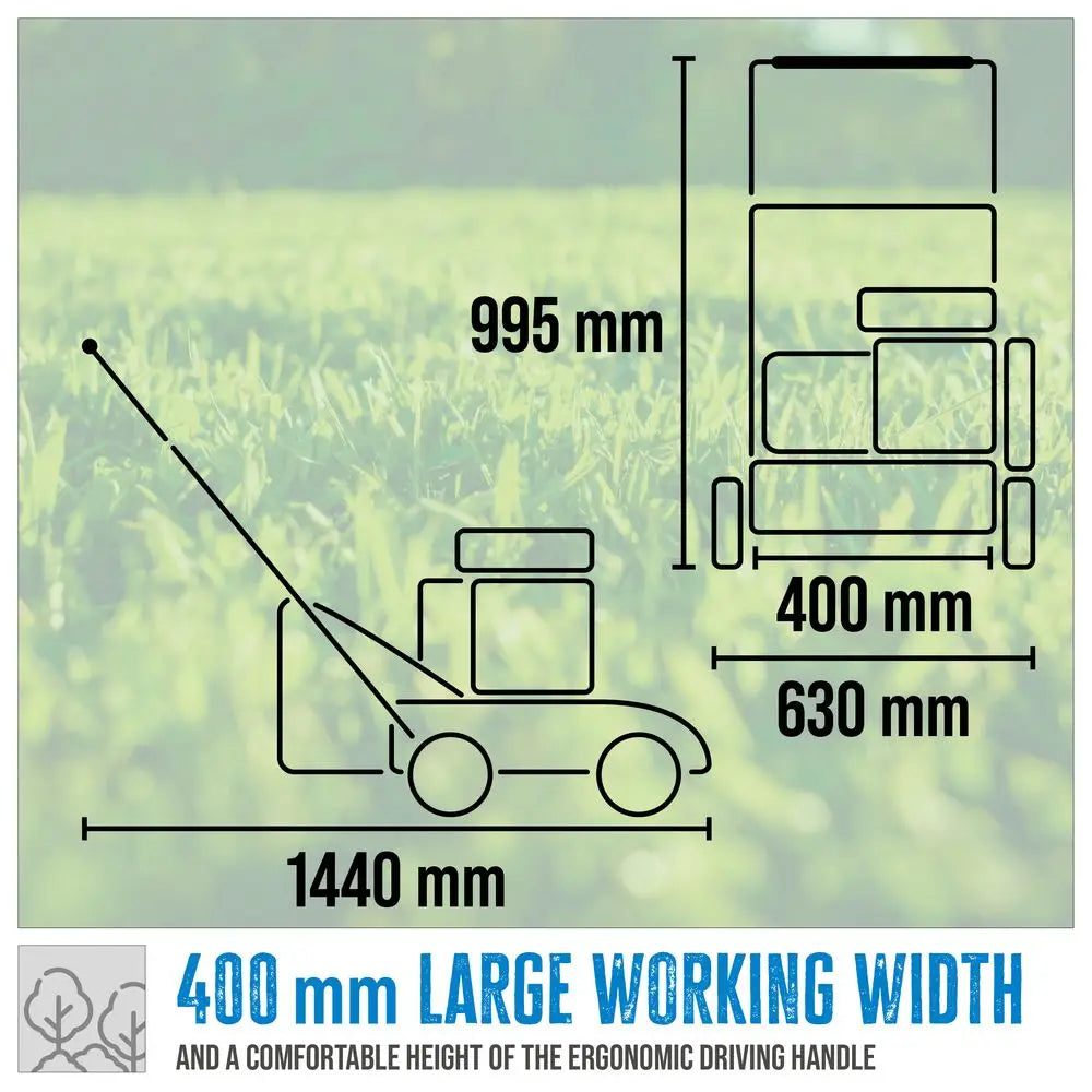 • Larghezza di lavoro di 400 mm per coprire grandi superfici rapidamente
