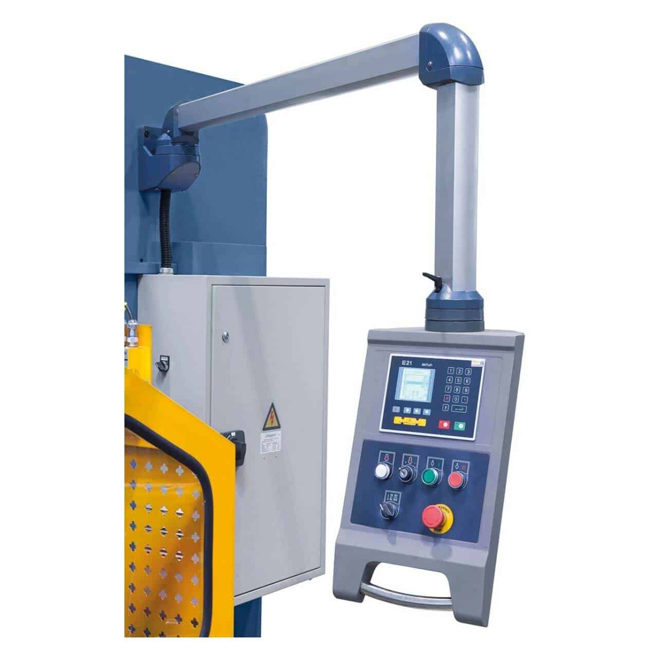 La piegatrice idraulica AKPL 4000 x 125 è progettata per garantire pieghe precise e uniformi anche su lamiere di grandi dimensioni. Con una forza di piegatura di 125 tonnellate e una lunghezza utile di 4000 mm, rappresenta la soluzione ideale per carpenterie e officine che necessitano di prestazioni elevate. Il sistema di bombatura manuale del banco, fornito di serie, compensa le deformazioni durante la lavorazione, assicurando pieghe perfettamente lineari su tutta la lunghezza di lavoro. Il telaio in acciaio privo di tensioni, i cilindri sincronizzati e il riscontro posteriore con vite a ricircolo di sfere garantiscono stabilità e precisione. Il controllo numerico NC E21S rende l’utilizzo semplice e intuitivo, mentre il sistema di cambio rapido degli utensili consente di ridurre al minimo i tempi di setup.