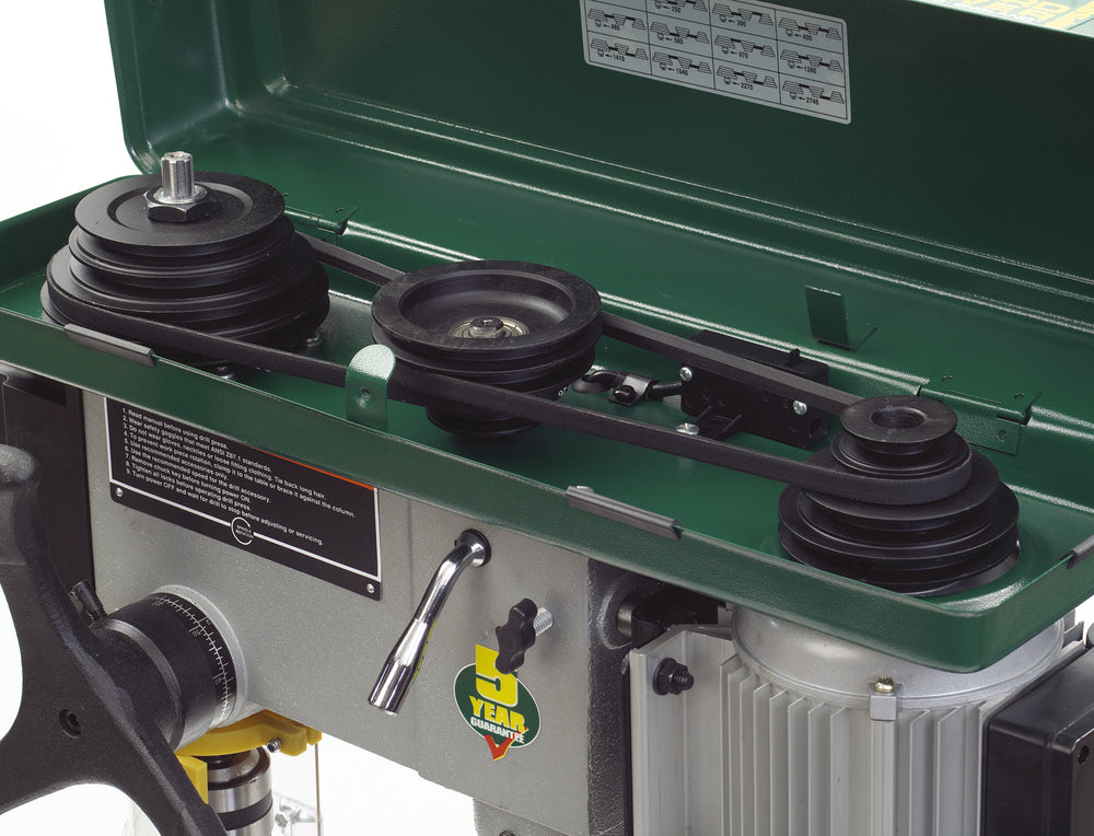 Grazie alla colonna da 50" e alla regolazione del tavolo a cremagliera, permette di lavorare pezzi voluminosi con facilità, mentre la testa in ghisa assicura rigidità e abbattimento delle vibrazioni.