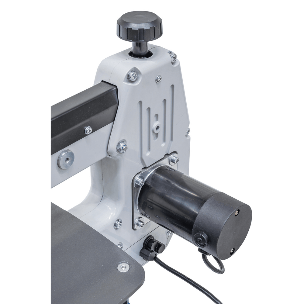 La Bernardo SS 460 N Vario / 230 V è una sega a traforo progettata per hobbisti, modellisti e artigiani che desiderano realizzare tagli di precisione su legno, plastica e metallo. Grazie alla regolazione elettronica continua delle corse (550 – 1550/min) e al braccio lungo 460 mm, permette di lavorare comodamente anche pezzi di grandi dimensioni. La tavola orientabile da -45° a +45° consente tagli inclinati precisi, mentre il sistema di aspirazione e soffiaggio mantiene l’area di lavoro pulita e ben visibile.