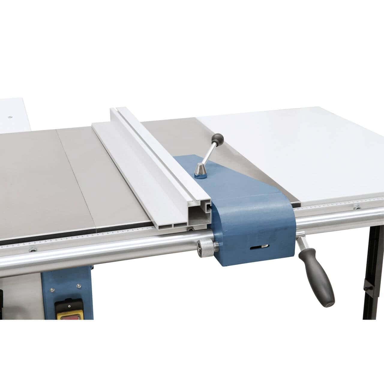 ⢠Guida parallela ribaltabile con regolazione micrometrica e lente d'ingrandimento