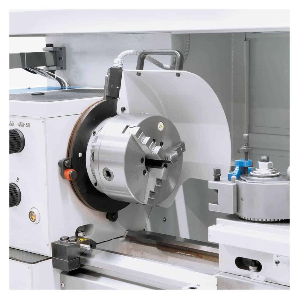 Il tornio Bernardo Compact 400 V è progettato per lavorazioni professionali ad alta precisione, ideale per officine e reparti di manutenzione. Con diametro tornibile sul banco di 400 mm e distanza tra le punte di 850 mm, offre capacità di lavorazione generose in una struttura compatta. Equipaggiato con un motore da 5,5 kW (7,5 HP) e variatore elettronico di velocità da 50 a 2500 giri/min, garantisce potenza e flessibilità operativa. Il visualizzatore digitale a 3 assi ES-12 V con display LCD e indicazione digitale della velocità semplifica il controllo dimensionale e aumenta la precisione. La ricca dotazione standard include mandrino autocentrante, piastra frontale da 320 mm, lunette, torretta portautensili a 40 posizioni con inserti, dispositivo refrigerante e protezioni CE. Un tornio compatto ma robusto, ideale per chi cerca affidabilità e performance in spazi ridotti.