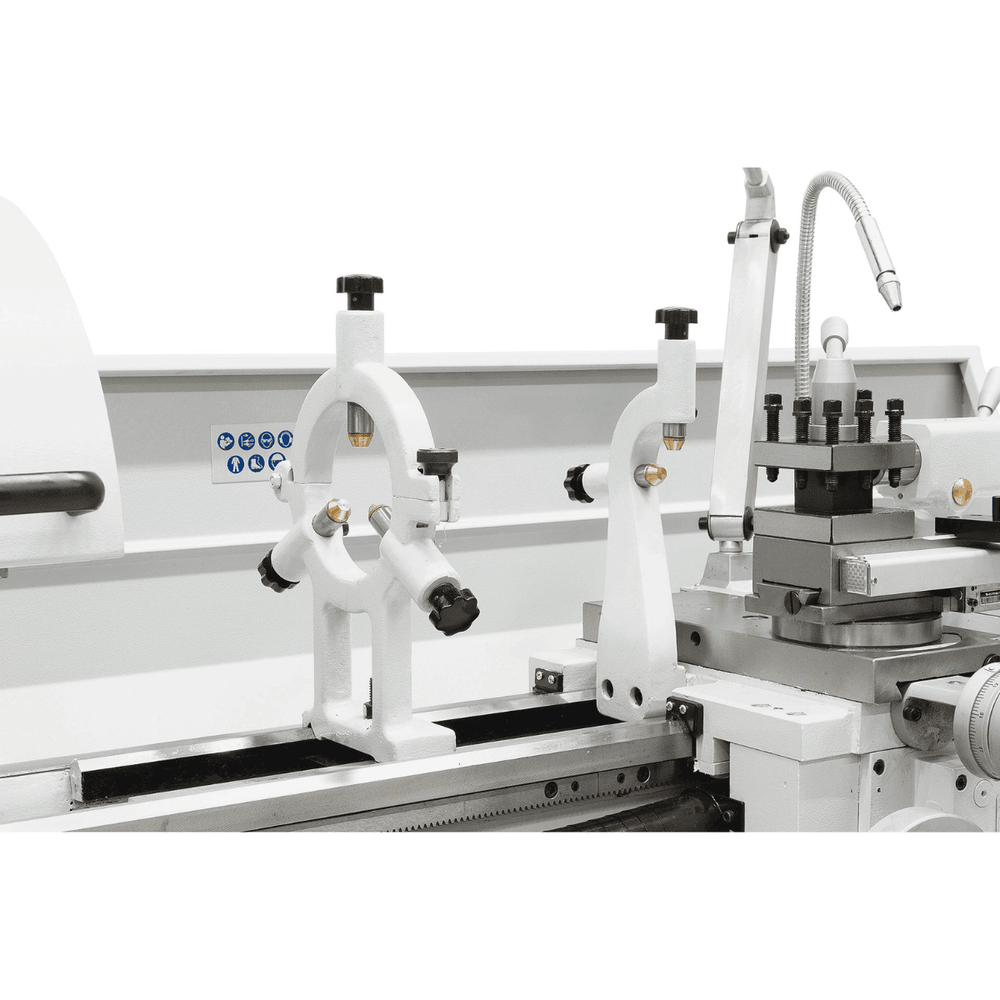 Il tornio Bernardo Master 180 con visualizzatore digitale a 3 assi ES-12 V è un modello professionale compatto, ideale per officine e laboratori che necessitano di precisione e versatilità. Con distanza tra le punte di 1000 mm e altezza punte di 180 mm, consente lavorazioni fino a Ø 360 mm sul bancale e Ø 480 mm con incavo rimuovibile. La struttura con bancale da 185 mm garantisce stabilità, mentre il foro mandrino da 51 mm con attacco DIN 55029 D1-5 permette lavorazioni versatili. Il motore da 1,5 kW (S1) e 2,2 kW (S6) con freno magnetico CE assicura potenza e sicurezza. Fornito con mandrini autocentrante e indipendente, lunette, torretta portautensili, refrigerante e numerosi accessori, rappresenta una soluzione completa per torniture professionali di pezzi di piccole e medie dimensioni.