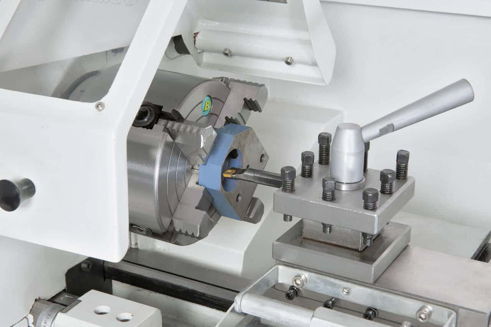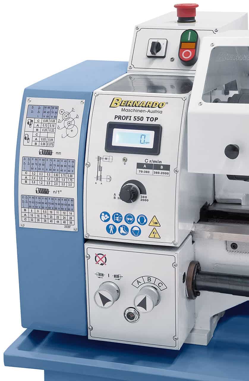 Il tornio Bernardo Profi 550 Top è progettato per garantire precisione e affidabilità in uno spazio compatto. Con una distanza tra le punte di 550 mm e un’altezza punte di 125 mm, permette la lavorazione di pezzi di piccole e medie dimensioni. Il mandrino a 3 griffe da 125 mm, il convertitore di frequenza integrato e l’indicatore digitale di velocità assicurano un controllo accurato durante ogni operazione. La gamma di velocità continua (70–2000 giri/min) e le numerose filettature metriche e in pollici lo rendono versatile e adatto a diverse applicazioni meccaniche. Grazie al peso contenuto di 137 kg, è facilmente installabile anche in spazi ridotti, senza rinunciare a stabilità e prestazioni. Ideale per officine artigianali e hobbisti avanzati, il Profi 550 Top coniuga tecnologia, sicurezza e qualità costruttiva Bernardo.
