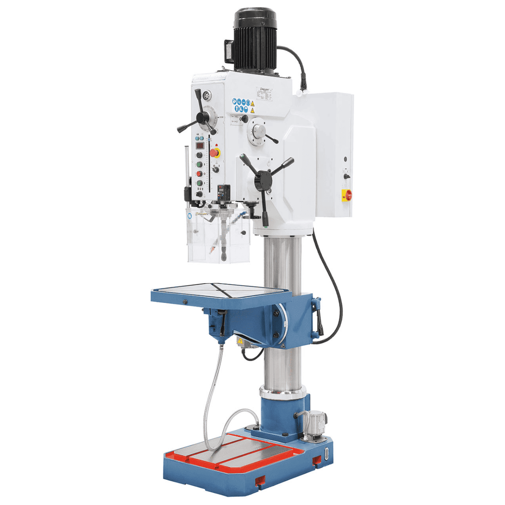 Il Trapano a Colonna a Ingranaggi GB 50 HS è una macchina di precisione progettata per operazioni industriali e di produzione in serie. Grazie alla sua grande potenza di foratura fino a 50 mm, alla costruzione massiccia e alla sua dotazione di serie, questo modello è perfetto per ambienti di lavoro esigenti che richiedono efficienza e affidabilità.