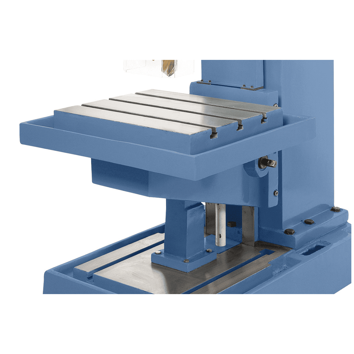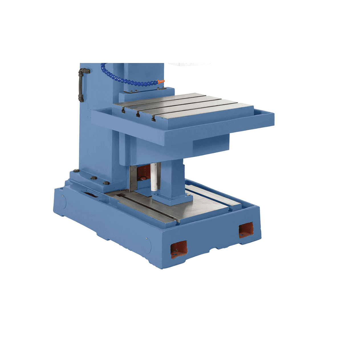 Il Bernardo Trapano a colonna fissa KBM 80 è progettato per lavorazioni industriali pesanti che richiedono massima precisione, forza e stabilità. La sua struttura in ghisa grigia massiccia, unita a una colonna robusta, garantisce elevata capacità di carico della tavola e lunga durata. Con capacità di foratura fino a 80 mm e filettatura fino a M56, è ideale per la meccanica pesante e per produzioni ad alto volume. Il motore da 5,5 kW sviluppa una coppia di 800 Nm e una forza di avanzamento fino a 30.000 N. L’avanzamento automatico del mandrino, il dispositivo di filettatura con inversione automatica e la guida a coda di rondine regolabile offrono affidabilità e fluidità d’uso. La dotazione standard comprende dispositivo di raffreddamento, lampada LED, protezione regolabile e utensili, rendendo il KBM 80 una macchina di riferimento nel settore industriale.